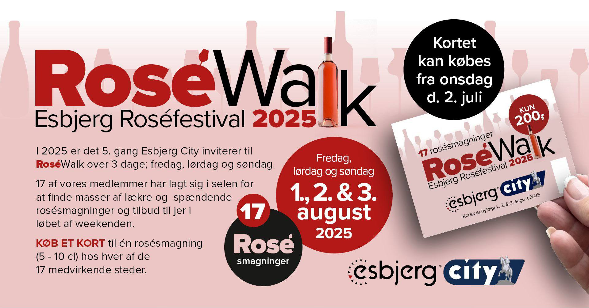 Esbjerg gør sig klar til en weekend fyldt med smagfuld rosé og social hygge, når Rosé Walk 2025 kommer til byen. Fra fredag den 1. august til søndag den 3. august vil 17 lokale aktører åbne dørene for alle med en hang til sommerens friskeste vin. Deltagerne kan forvente smagninger af 5-10 cl rosévin forskellige steder i Esbjerg, herunder hyggelige restauranter, caféer og barer.
