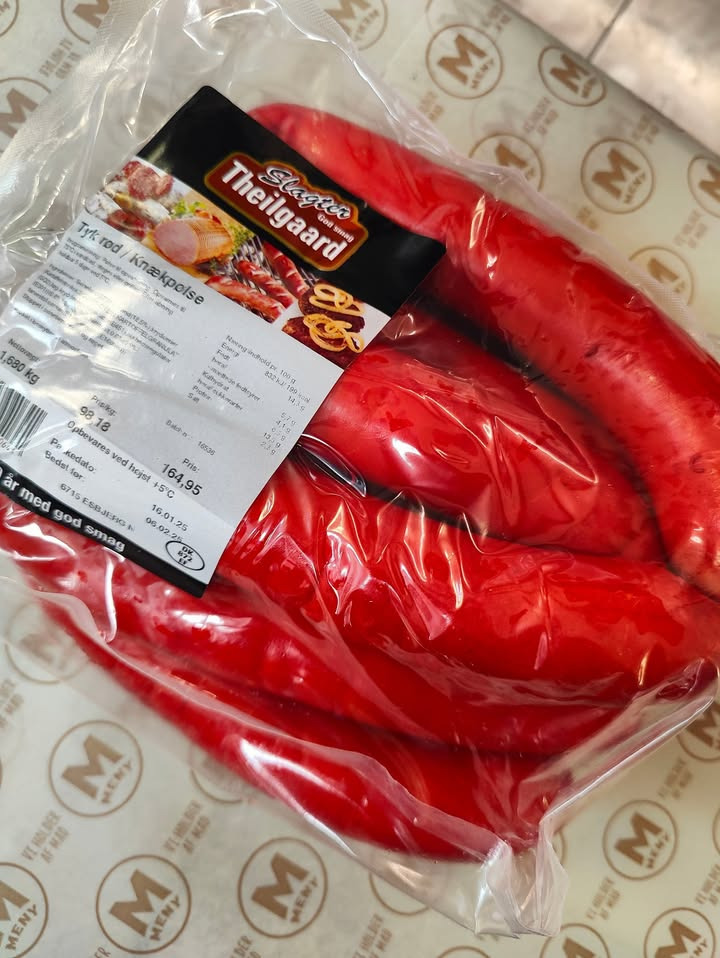 Vi har fået et parti helt frisk producerede Slagter Theilgaard røde knæk pølser!