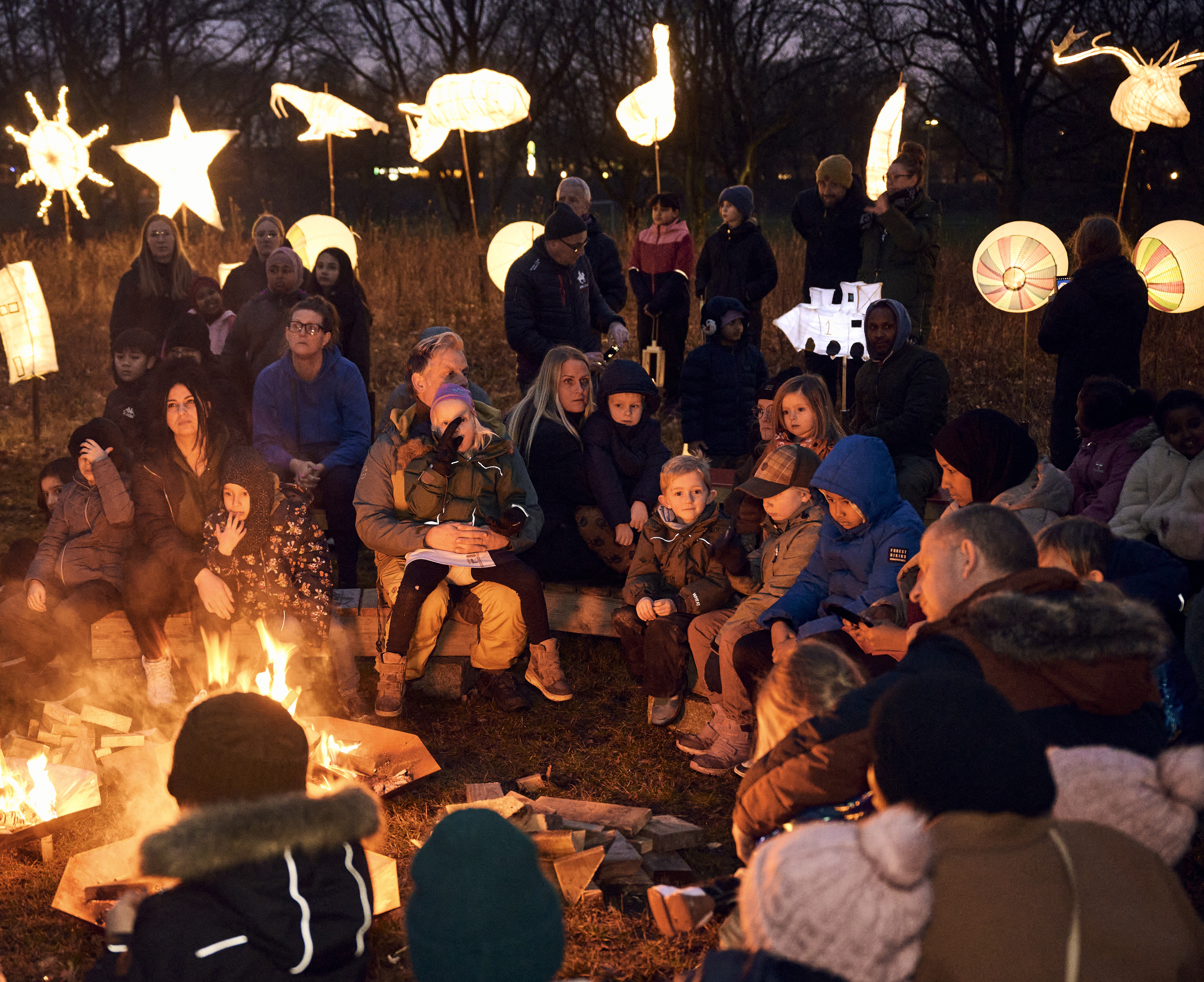 Lanterneoptog og velkomsttaleFestlighederne starter kl. 16.30 med et lanterneoptog, der begynder ved Bakkeskolen. Her vil elever fra 0.-4. klasse tænde lanterner og gå i optog til Kvarterspladsen, ledsaget af scenograf Sara Vilslev. Jerne Børnehave slutter sig til optoget ved ankomst til pladsen, og alle er velkomne til at deltage eller opleve optoget ankomme.