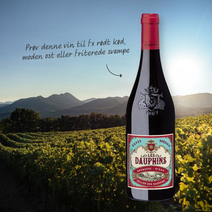 Les Dauphins vin er perfekt til rødt kød, lagret ost og stegte svampe … og den kan også snildt nydes som den er!