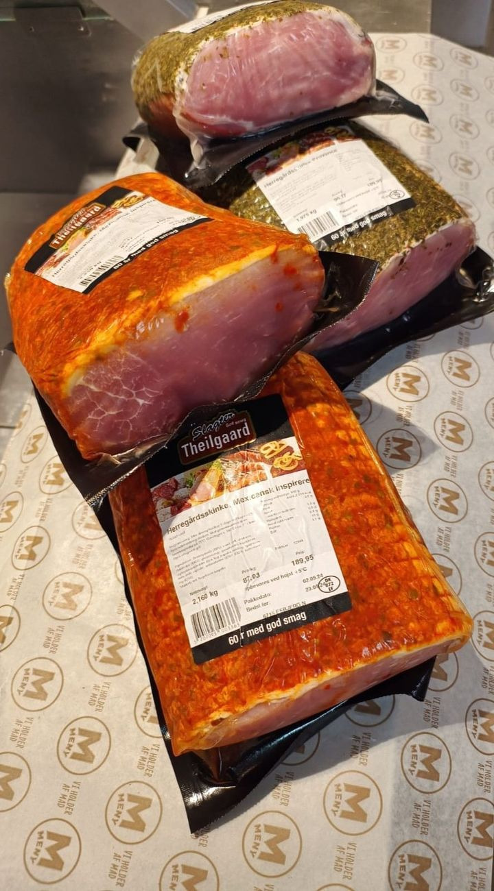 Vi har skaffet nogle store flotte krydret herregårdsskinker fra Slagter Theilgaard!