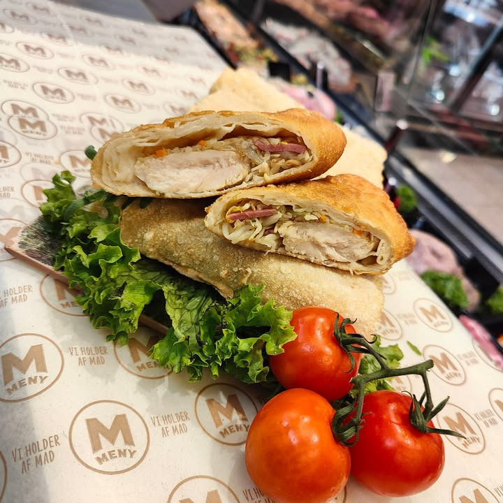 Store luksus forårsruller, fyldt med kylling, skinke, gulerødder, bønnespire, løg og krydderier.🫚