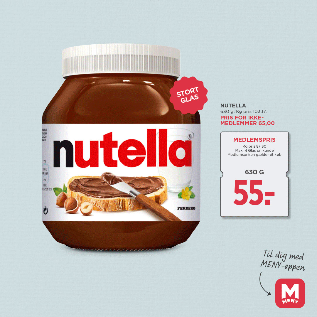 Hvem kan sige nej til Nutella? Denne uge kan du få fingrene i et stort 630 g glas til kun 55 kr. – perfekt til at forkæle dig selv!