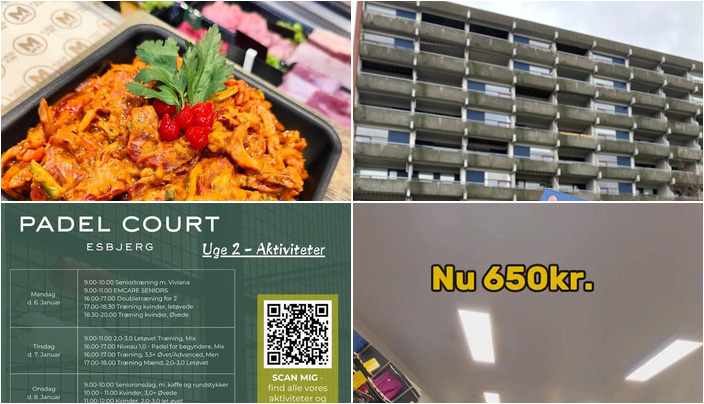 Padel Court Esbjerg byder det nye år velkommen med masser af aktiviteter på programmet. RealMæglerne Esbjerg og Bramming fejrer et nyligt boligsalg og opfordrer til at kontakte dem for en fremtidig handel. ROSENGREEN tilbyder smarte vinterjakker med 50% rabat. Meny Hjerting præsenterer deres berømte Hjertinggryde, en luksus gryderet, til en speciel pris, som kan afhentes i dag. For mere information kan du læse de oprindelige opslag.