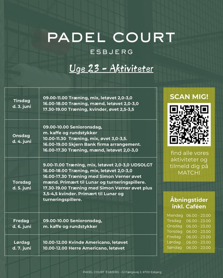 Padel Court Esbjerg er kommerciel partner med VORES By Esbjerg og oplysningerne er hentet fra deres Facebookside. Støt lokalt og giv en tommel op på deres side.