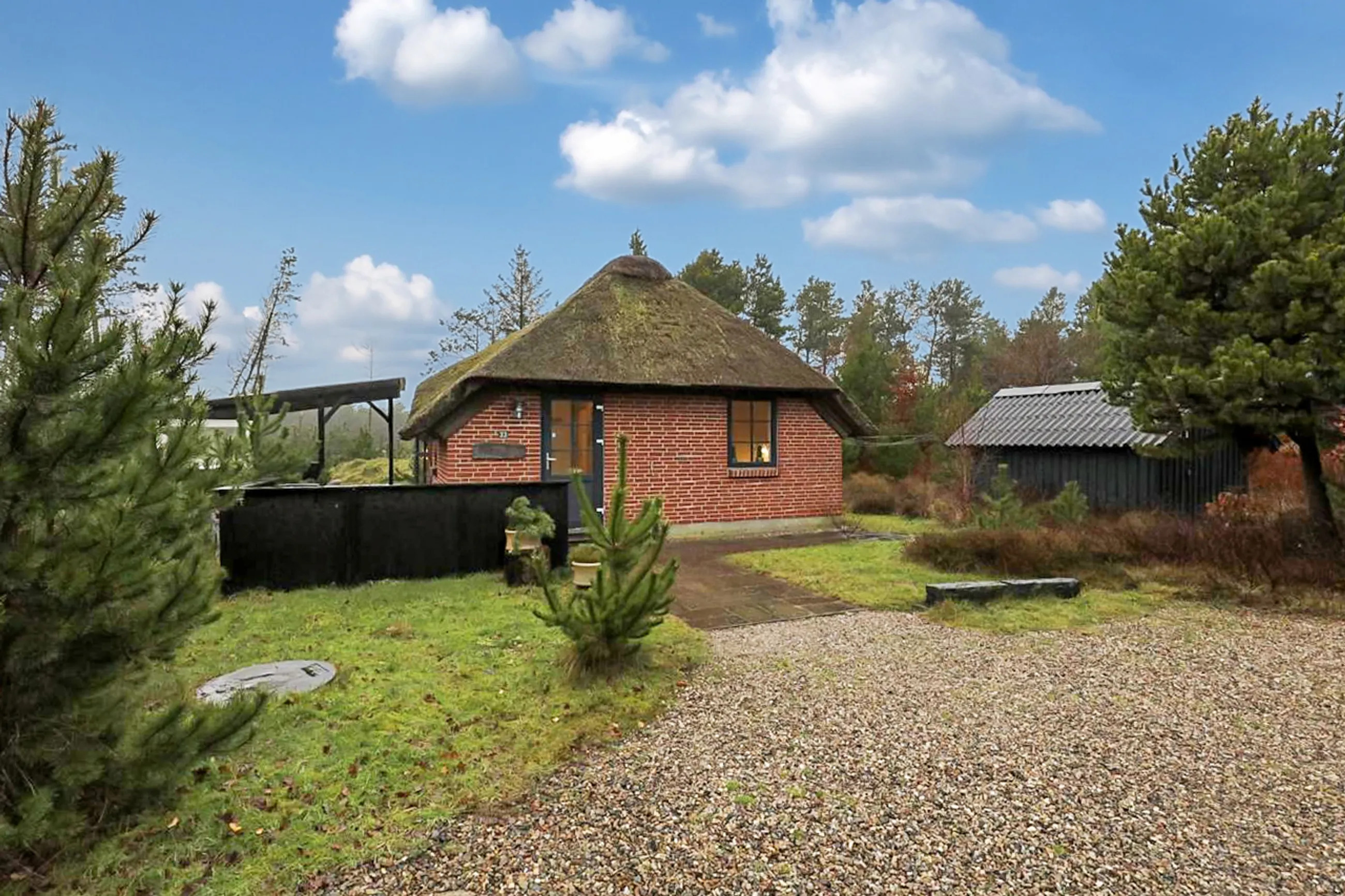 Fritidshuset er beliggende på skøn naturgrund og har gode parkeringsmuligheder samt en skøn tilhørende overdækket terrasse.
